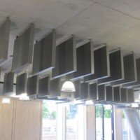 Sound baffles are ideal for reducing reverberation times anywhere you encounter airborne sound transmission. This is common in large open spaces with many hard surfaces.